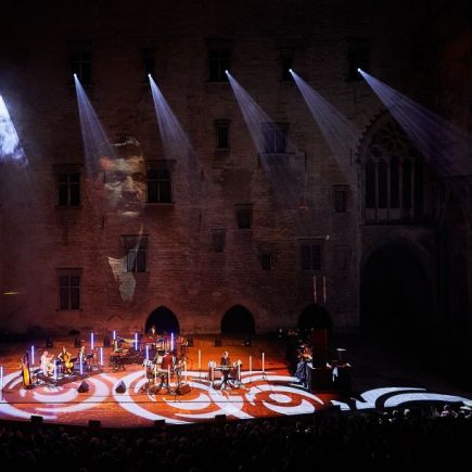 Cour d’honneur du Palais des papes – Festival Avignon Source : https://www.festival-avignon.com/fr/spectacles/2019/arnaud-rebotini-et-le-don-van-club-jouent-120-battements-par-minute